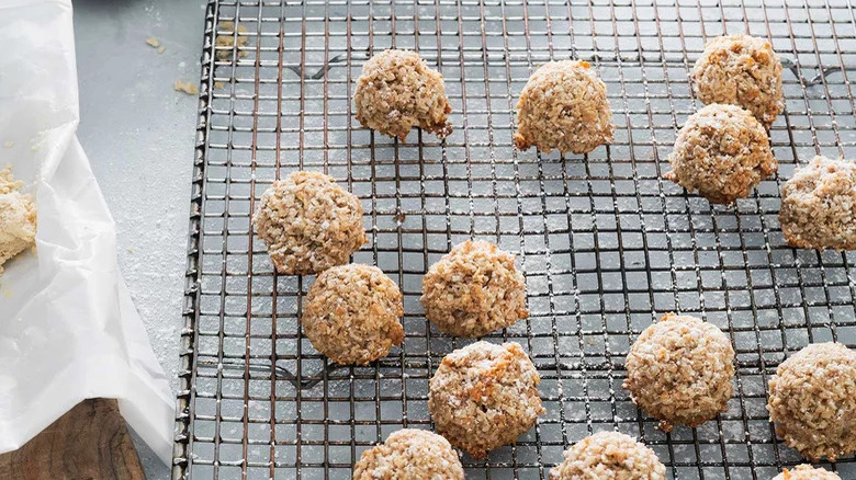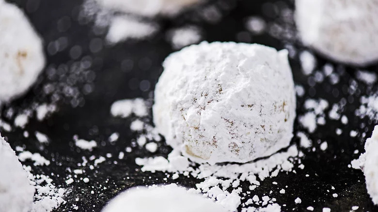 For a festive wintertime treat without the Christmas connotations, these classic snowball cookies are the way to go. Covered in powdered sugar and dotted with chopped pecans, these cookies are somewhat similar to an Italian wedding cookie. You'll find these simple and sweet cookies make a little bit of a mess while you're chowing down, but that's just part of the snowy fun. Our recipe makes two dozen cookies in under half an hour, using ingredients you likely already have on hand.