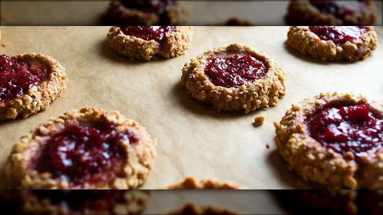 Last up, but certainly not least, are these thumbprint cookies that are such an upgrade over your traditional peanut butter cookies you'll never consider returning to your old go-to recipe. They pack in all the nostalgic goodness of a peanut butter and strawberry jam sandwich into a miniature, portable bite. You'll make your own jam for this recipe, but trust us — it's not as difficult as it sounds and is absolutely worth it. The entire jam and cookie-making process can be done in under an hour and produces 40 scrumptious cookies.