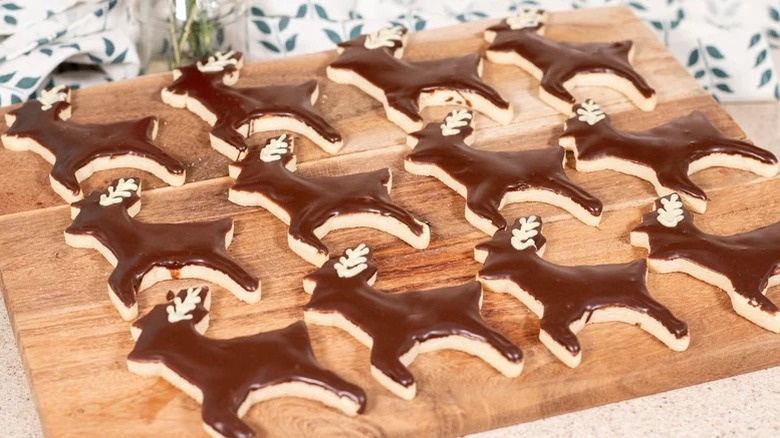 For something on the festive side, these reindeer sugar cookies deliver. However, these are not your average holiday sugar cookies. Rather than using some messy gingerbread-esque piping or colored sugar to create your festive aesthetic, this cookie recipe gives your classic holiday look an elegant upgrade, by decking reindeer-shaped sugar cookies in a layer of thin chocolate icing, topped with just a sliver of a white-chocolate antler. This is Rudolph for the adults.