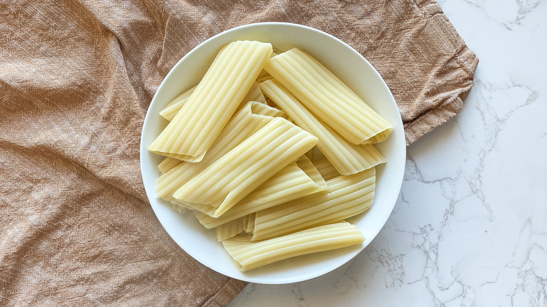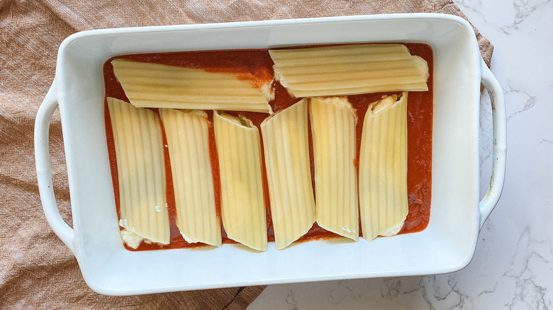 If you were to type the word "manicotti" into Google Translate, the Italian to English translation would be something along the lines of "little sleeves." And, as it turns out, this literal translation is pretty fitting, and manicotti pasta really is composed of tiny little sleeves, tubes, or whatever you wish to call them. And, even better yet, these little sleeves become the perfect vehicle for a creamy, cheesy, and flavorful filling. In this recipe, the filling consists of ricotta, Parmesan cheese, and eggs. We love serving manicotti as a slightly elevated — and maybe just a bit more involved — way to serve all the flavors of lasagna. Meals like this feed a crowd and appeal to even the pickiest of eaters.