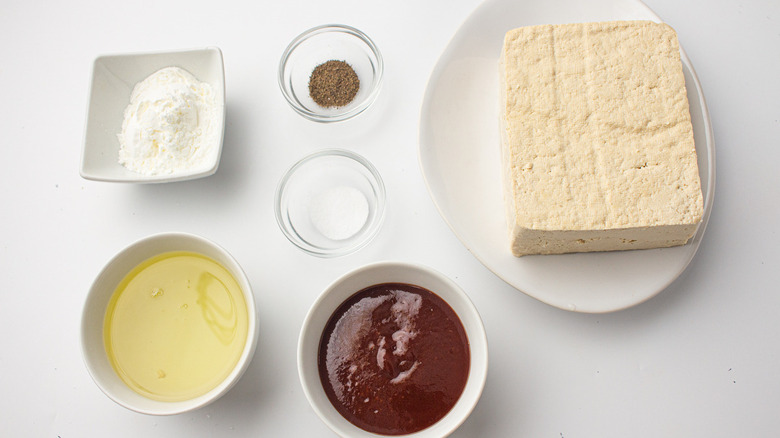 One of the best things about this BBQ tofu recipe is that it requires minimal ingredients, making it ideal for busy weeknights. For this recipe, you'll need some extra firm tofu, salt, pepper, cornstarch, vegetable oil, and barbecue sauce. With these six ingredients, you can transform plain, bland tofu into something super flavorful. And, thanks to the cornstarch and vegetable oil, you'll fry the tofu, giving it that wonderful "crispy" texture that Olayinka loves.