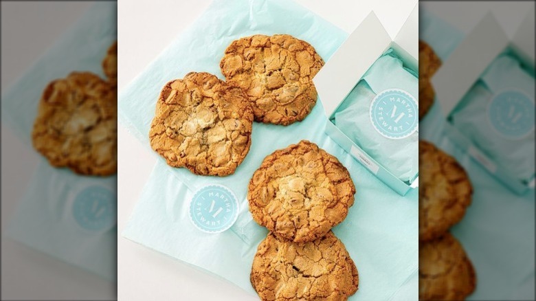 If ever there was a celebrity chef who hustles, it just might be Martha Stewart. Not only has she had a successful career as a model, caterer, and television host with many product lines, but she is now selling everything from CBD gummies and clothing to wine and even baked goods made from her own recipes on Goldbelly (via Progressive Grocer). While fans have undoubtedly found many of Stewart's products in stores, they can now shop for her delicious treats online and have them delivered straight to their door wrapped in her signature blue.
