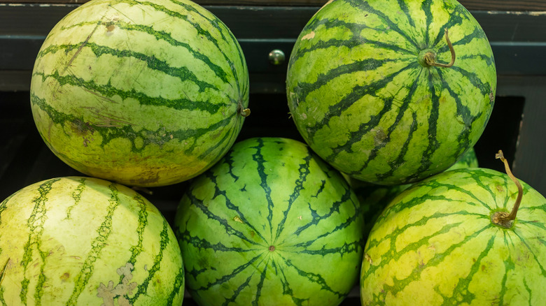 And don't let the colors fool you — red, pink, and yellow watermelons have similar textures — all are juicy and crisp, and they all taste very similar, although as MasterClass points out, some types of yellow watermelon can be sweeter, with honey-like undertones. Yellow watermelons can be used the same way as red and pink watermelons — they can be enjoyed on their own as fruits, or in juices and smoothies, in salads, or as part of a summery cocktail.