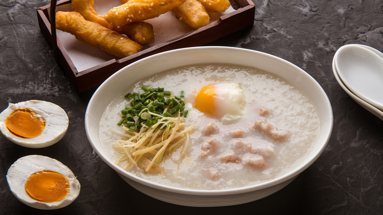 If you're ever in need of food that is comforting for both the body and the soul, think of it as the perfect occasion to swap chicken soup for a warm bowl of congee. Congee goes by several names in Asia but in China, it is the very definition of Chinese comfort food. Tobie S. Meyer-Fong, a professor at Johns Hopkins University, told The Washington Post that the first food babies taste in China is often congee and that the porridge-like bowl is eaten by everybody — seniors with trouble chewing, those down with a stomach bug or really, anybody even just nursing a hangover.
