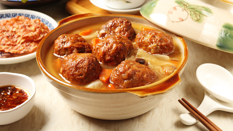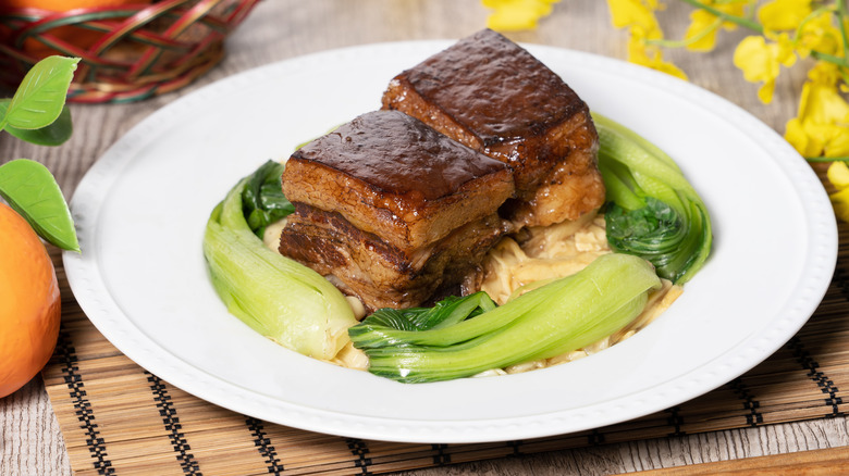 Statistics say that China alone accounts for half of the world's pork consumption, with a single person in China eating up to 40 kilos of pork in a year (via The Economist). It comes as no surprise then that Chinese cuisine is also responsible for some of the best pork dishes. Dongpo pork is a dish made from pork belly that is slow-cooked for a very long time in a liquid of soy sauce and Shaoxing cooking wine. The liquids break down the fat in the meat and the result is a pork so tender that it only requires a gentle nudge from a pair of chopsticks to fall apart. Because the pork requires hours of cooking to become so deliciously tender, it is recommended that people reserve their meals at least a day in advance when going to a restaurant that is famous for its dongpo pork.