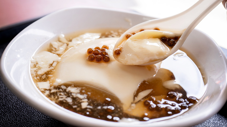 It is said that tofu originated in the Han Dynasty of China when a young prince went about mixing brine and soybean milk in the hopes of creating a food that would immortalize his people. While he may not have succeeded with the immortality bit, his creation — tofu — is certainly enjoyed not just by his people in China, but all over the world by many. Aside from being used in stir-fries and broths, tofu is also eaten as a pudding in China.