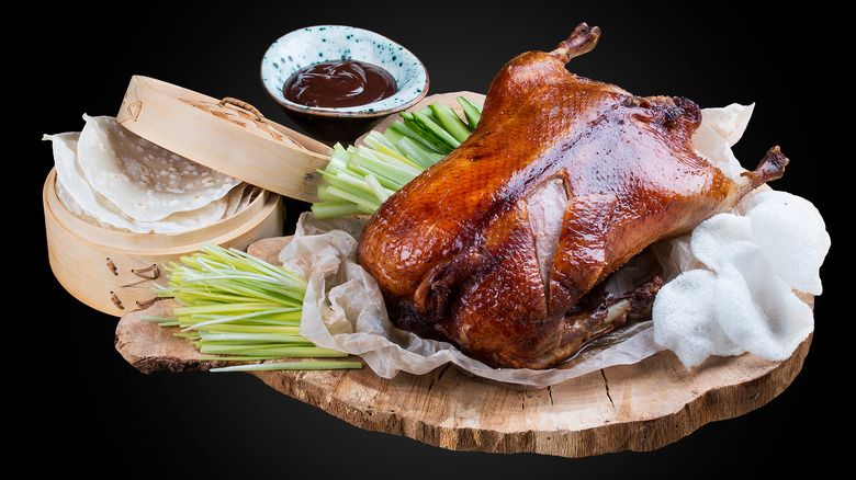 Peking duck when brought whole to a table looks like a food delicacy that belongs more in one of the many portraits of feasts and banquets thrown by mid-century kings and queens. It turns out, the roasted duck has long been a favored dish of Chinese emperors. The Qianlong Emperor of China is even said to have eaten eight Peking ducks over the span of two weeks at some point in 1761.