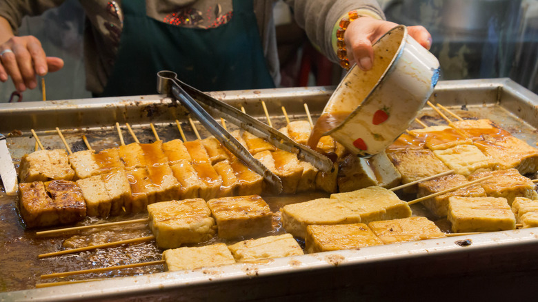 Fans of stinky tofu — and there are many — will happily argue that it falls under the umbrella of good stink. In China, stinky tofu is a popular street food that is deep-fried, grilled, steamed, and stewed. It's usually served with pickled cabbage and garlic chili sauce. It's also been served with hoisin sauce. Although this dish can be found in mainland China, it's especially popular in Taiwan.