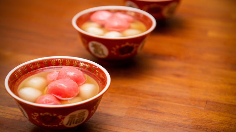 Tang yuan, or yuanxiao as it goes by in Northern China, is a sweet dish of rice balls with rich symbolism in Chinese festivities. Each year, the Chinese celebrate a two-week-long Chinese New Year, which ends with the mesmerizing Lantern Festival. While families gather to light lanterns, they also gather to eat delicious Chinese foods, in particular tang yuan — a colorful dessert of bite-sized chewy rice balls that symbolize harmony and reunion. In fact, when spoken out loud, the sound of the word tang yuan sounds the same as "tuán yuan," which is the Chinese word for reunion.