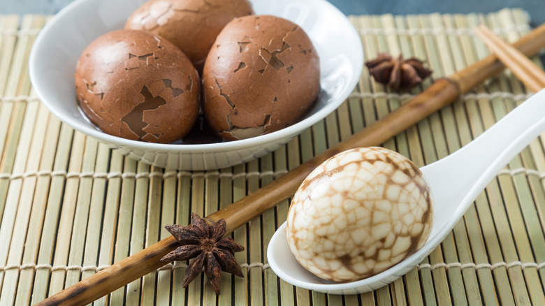At this point, it feels like we already have done everything with eggs that we could possibly do. We bake them, fry them, poach them, pickle them, and use them in all sorts of cooking — there's only so much more that an egg can do to surprise you. But these tea eggs just might do the trick. A popular choice of snack in parts of Southeast Asia, tea eggs are often sold by street vendors at markets and can even be found at convenience stores.