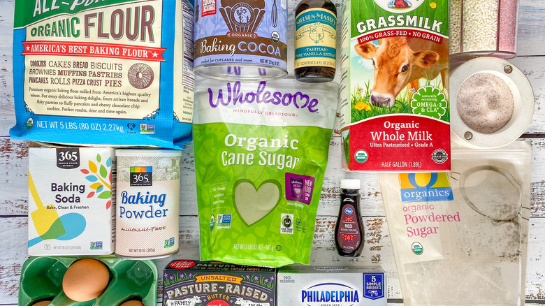 Assemble the ingredients for red velvet cupcakes