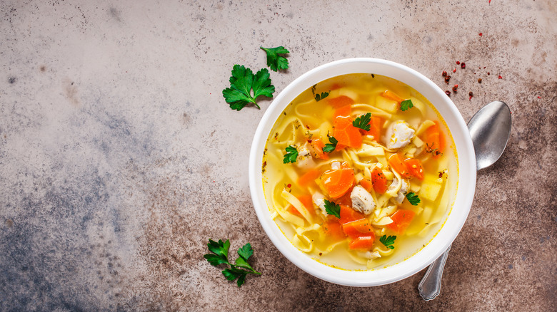 If there's one staple comfort food dish that makes you feel like you've been wrapped in a warm hug, it's got to be chicken soup. Whether shot through with rice, bulked out with noodles, or seasoned with any number of "secret ingredients" including fresh lemon juice or a parmesan rind, chicken soup is not only warming and delicious, it also boasts a whole host of healthful properties such as the ability to reduce cold symptoms and even (if you're using bone broth) nourish our skin from the inside out.