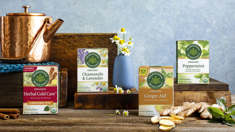 Undoubtedly one of the most recognizable teas on the market, just about every local grocery store keeps plenty of Bigelow varieties in stock. It's the go-to choice for many customers who toss a box of their regular brew into their carts on a weekly basis. The company boasts a wide array of flavors ranging from a classic English Breakfast to their Bigelow Benefits line, a collection of blends cultivated for their healing properties. That's not all, though; the brand prides itself on its eco-friendly efforts that go far beyond simply creating compostable teabags.