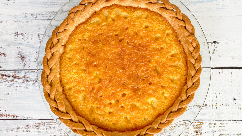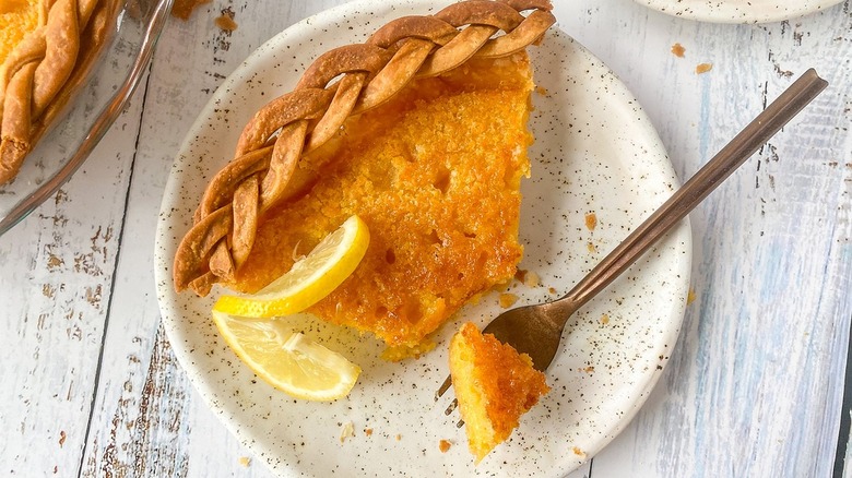 If you've ever visited or lived in the U.S. south, chances are you've tried — or at least heard of — chess pie. According to Southern Living, chess pie has been around for centuries, and it always has butter, sugar, and eggs in the recipe, and cornmeal is often a key player as well. Over the years, people have gotten creative with chess pie, and the variations that you can make to the classic recipe are nearly endless. Take, for example, recipe developer Hayley MacLean's rendition, which adds some fresh lemon flavor. Indeed, MacLean's lemon chess pie stays true to the classic version, but she throws some delightful additions in there as well.