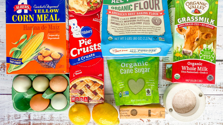 For this lemon chess pie recipe, you'll need a few staple ingredients to get going. You'll need a pre-made pie crust, eggs, whole milk, granulated sugar, lemon juice, lemon zest (two whole lemons should provide you enough juice and zest), cornmeal, flour, salt, and some unsalted butter. That's it! One of the reasons chess pie came to be so popular is because it's basic but delicious. Odds are that you have a lot of these baking ingredients ready to go in your pantry.