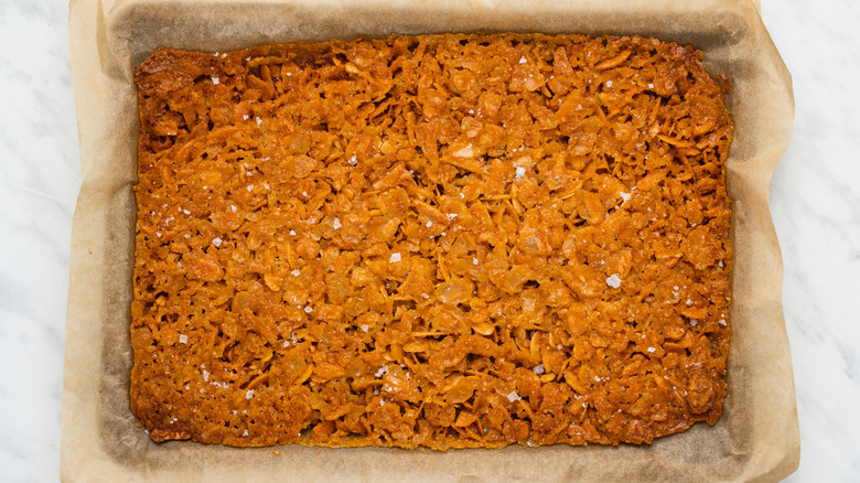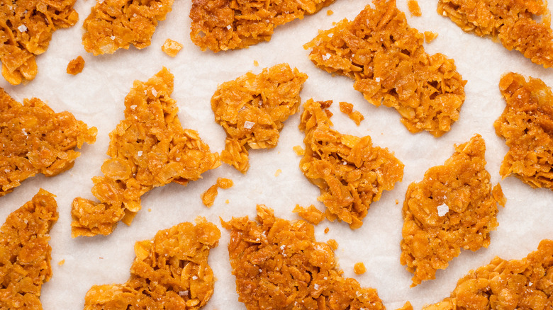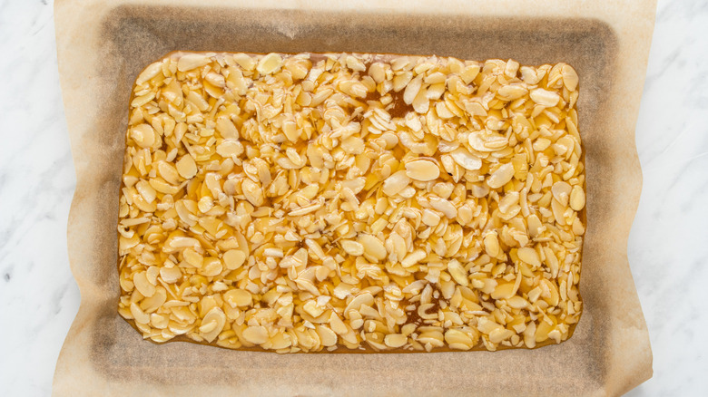 Desserts come in all shapes and sizes. We love making cookies, cakes, and other sweet treats to satisfy all those sweet tooth cravings, and we think this almond brittle recipe is one of the best after-dinner treats around. There's a lot to love about this recipe, including the fact that it requires just a few ingredients, making it relatively easy and affordable to whip up. All you need to do is set aside about 10 minutes for prep work, then 20-25 minutes for baking. The result is some crunchy, sweet almond brittle.