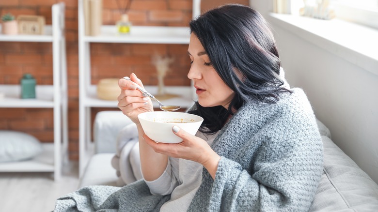 For most of us, though, the No. 1 medicinal food we've utilized throughout our lives is likely chicken soup, whose cold- and flu-soothing properties many of us are introduced to from our earliest years. Who doesn't remember being home from school, stuck in bed, watching cartoons while mom or dad placed a bowl of hot soup on our TV tray? Although it could seem like chicken soup's curative powers are purely a placebo effect, for years there's been actual science backing up what many of us have known all along: chicken soup really does lessen the symptoms of cold and flu, and can even help speed along recovery time (via ScienceDaily). So what is it about chicken soup that makes us feel better? Read on to find out.