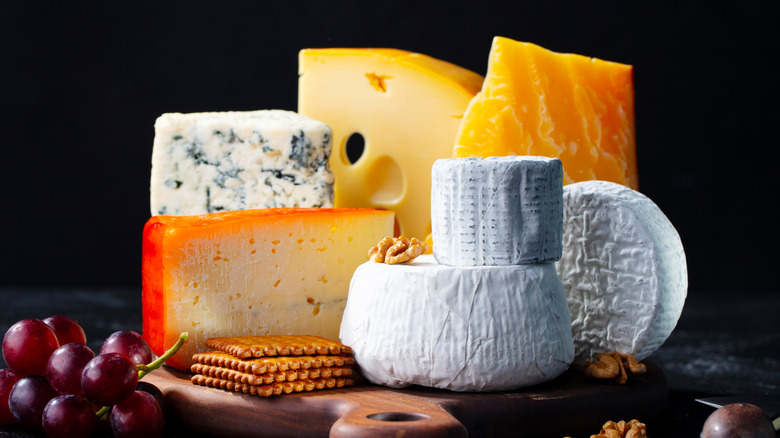 Depending on which cheeses you want to toss into your fromage fort, it can taste more mild or more assertive. According to Bon Appétit, stronger cheeses such as blue cheese will lend funk, while more neutral cheeses such as muenster or gouda will create a milder spread. Harder cheeses such as Parmesan add saltiness to the dip, while a splash of dry white wine lends acidity. Most recipes call for some minced garlic, which brings a bit of heat and depth of flavor. Pair fromage fort with crackers, like sourdough, or consider raw carrots, apple slices, or rounds of cucumber, which can provide a nice freshness that can cut through the richness of this cheese spread.