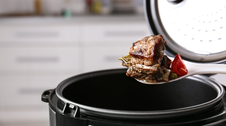 The Kitchn says that while you may be tempted to lift the lid of your slow cooker to see how your meal is coming along, that's generally a pretty bad idea. That's because slow cookers function by trapping heat in the machine, which is what cooks your food. If you keep lifting the lid, you're letting all that heat escape. And if you do this too often, your food is going to take a lot longer to cook. Sure, if you have to do it once or twice very quickly during the cooking process, you may not add too much cook time. But keep doing it, and you may add hours of cook time to your process. Clearly, that should be avoided, especially if you're using your slow cooker to cut down on the amount of time you spend in the kitchen.