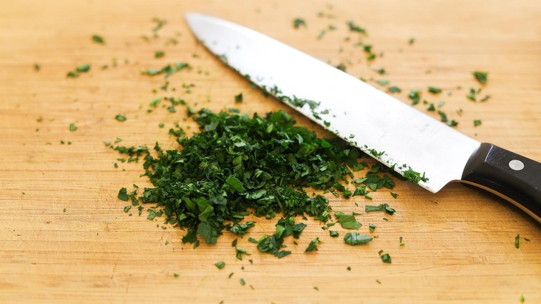 Hondrum makes her dressing with fresh chopped parsley. If you plan to include this ingredient, go ahead and chop it now. You can also substitute 2 teaspoons of dried parsley, but if you want to go parsley-free, honestly, it won't make too much of a difference. Parsley has a flavor which is fairly subtle, and in the presence of something strong like blue cheese, it's not all that noticeable apart from the color it adds.