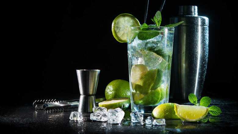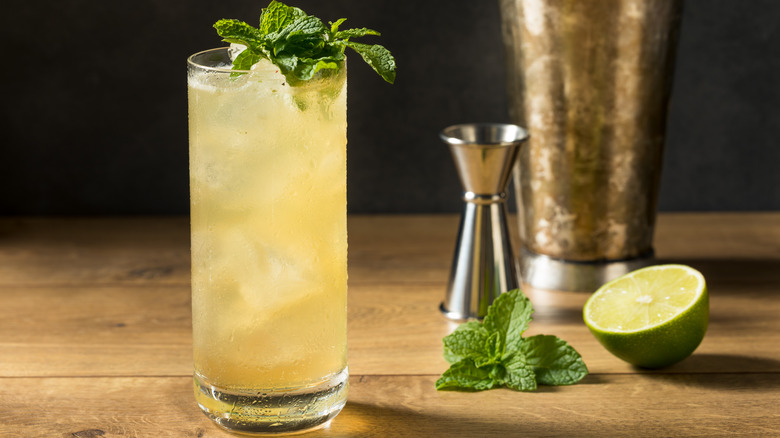 And fortunately for gin fans, club soda still makes a great gin cocktail. Specifically, a vintage cocktail that needs to make a serious comeback, because most people have largely forgotten just how awesome it is. That's the gin rickey, and it's basically gin and lime juice, served on ice and topped off with club soda. That's it! It's simple, it's healthy as far as cocktails go — as The Spruce Eats declares, there is zero sugar in this highball — and best of all, you'll be able to taste all those botanical flavors that had you choosing gin in the first place.