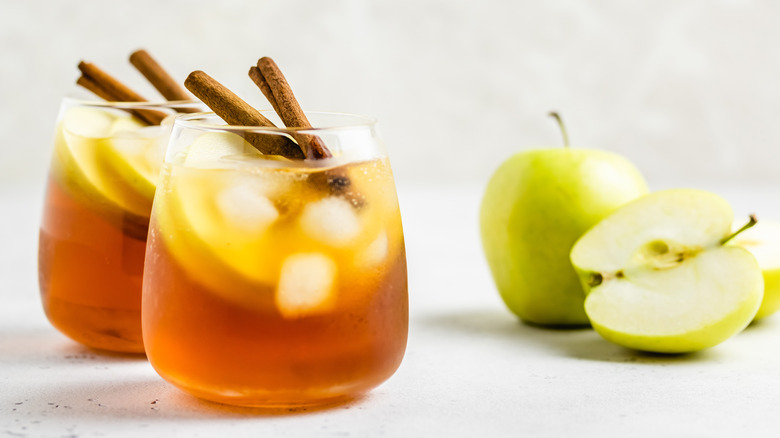 Pumpkin spice might dominate the autumn flavors, but let's not forget that this is also the time when fresh apple cider hits shelves, too — and according to The Washington Post, adding some gin might just be the best way to kick off any autumn dinner ... special, or ordinary. It points to a fairly simple cocktail that calls for just apple cider and gin, poured over ice, with a dash of bitters. While the Post suggests garnishing the drink with a bit of spiral-cut orange peel, that is by no means necessary.