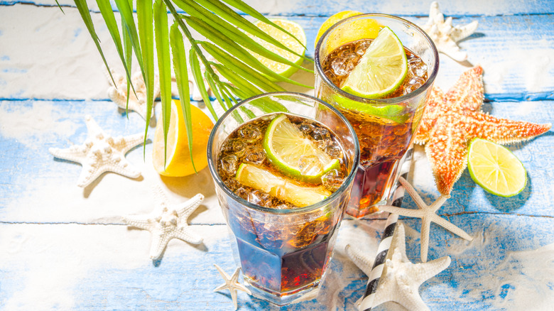 Root beer is one of those sodas we seem not to have often enough. It's easy to reach for the cola or the lemon-lime, but the root beer? Reach for that, and you'll never regret it — especially when you use it to make a unique take on the gin fizz. Cocktail Builder says all you'll need for this one is root beer and gin in a 2-to-1 ratio, then add a dash of lemon juice and a teaspoon of sugar.