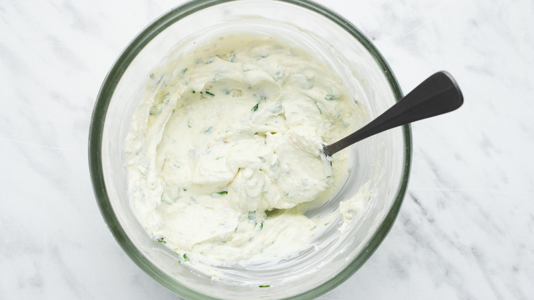 For this recipe, you'll need cream cheese and ricotta cheese. You'll also need garlic powder, onion powder, salt, and chopped parsley. You can use curly or flat-leaf parsley — just make sure to chop the parsley finely!