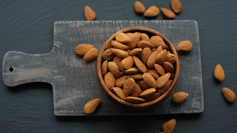 According to the BBC, almonds are rich in healthy, unsaturated fats and minerals like magnesium, copper, and manganese. And almonds are also a good source of vitamin E, an immune system essential, according to the NHS, which contributes to improved eye and skin health. And research, the BBC notes, has linked almonds to improved blood sugar management and weight management, not to mention reduced risk of heart disease.