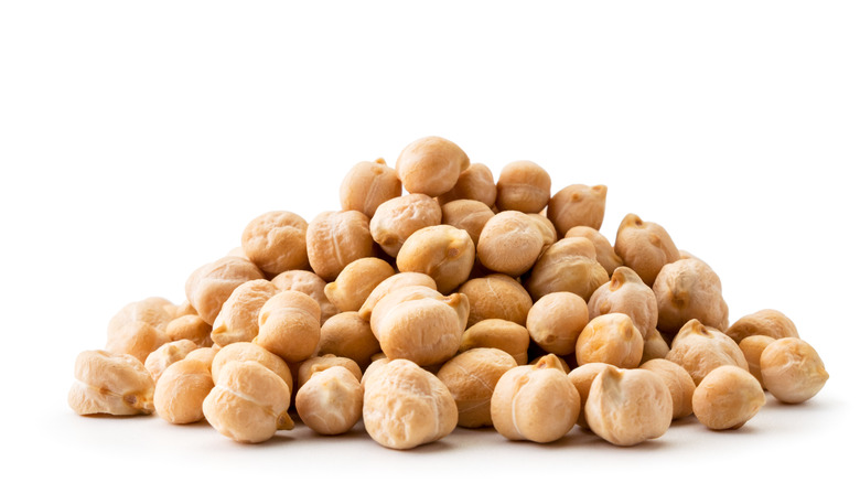 Beans and legumes tend to be a great source of fiber, and chickpeas (also known as garbanzo beans) are no exception. Boasting amylose starch, which is slow to digest, as well as a low glycemic index, this pulse can help keep your blood sugar low. And, thanks to their richness in soluble raffinose fiber, with a whopping 12.5 total grams per cup of cooked chickpeas, according to SFGate, they keep digestion regular and consistent, according to WebMD. And if better bowel movements weren't already making you happier, chickpeas' richness in choline, the outlet adds, can improve not just your mood, but your memory.