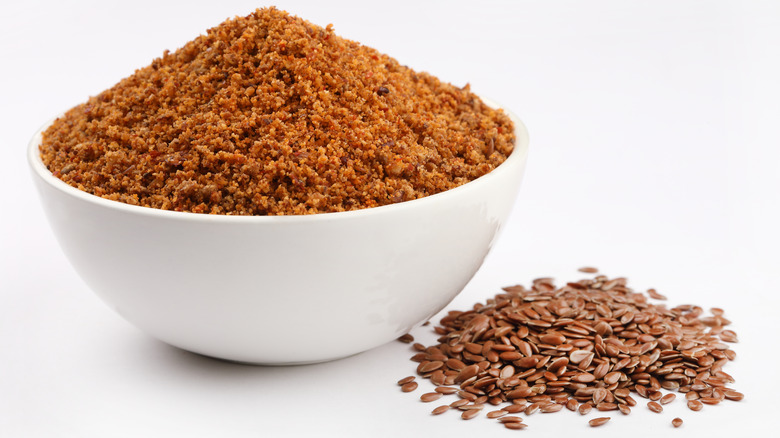 And of course, flaxseed is also rich in fiber, specifically insoluble fiber, according to the outlet. The National Center for Complementary and Integrative Health notes, nevertheless, that consuming flaxseed without adequate water may have effects counter to the desired outcome, with the potential to worsen constipation and even lead to intestinal blockage. To best reap the benefits of flaxseed, according to The Mayo Clinic, it's best not only to accompany it with a big glass of water, but to grind it into a meal or powder first. Whole seeds, according to the Clinic, can pass through the intestine undigested, leaving their incredible benefits untapped.