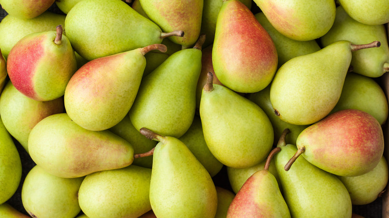 In addition to fiber, according to Medical News Today, pears are loaded in vitamins C and K as well as minerals like potassium. Consider pairing pears with other fiber-rich foods, such as pecans, beets, and lettuces to make a delicious sweet-and-savory salad that's tasty, healthy, and filling. Pears are also a lovely accompaniment to a cheese board, marrying particularly well with blue cheeses, feta, and goat cheese, according to Chelan Fresh. Nuts like pecans or walnuts and whole wheat crackers make this tasty combo a fairly fiber-filled snack option perfect for entertaining.