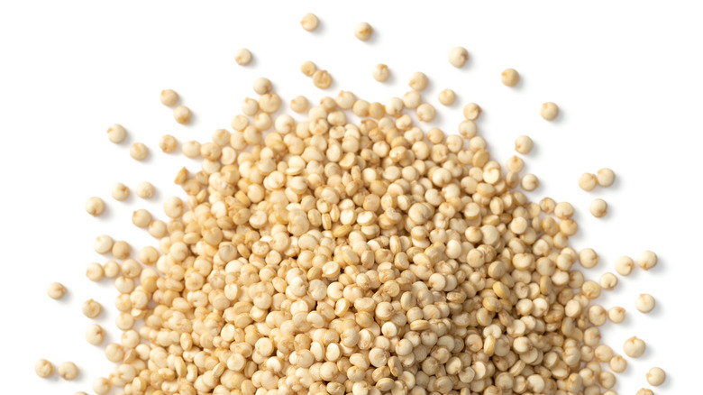Quinoa emerged as a superfood several years ago, and it's not hard to see why: Boasting all of the benefits of both whole grains and protein-rich seeds, this pseudo-grain (technically the seed of a plant more closely related to beets or spinach than true grains like wheat or oats, according to Medical News Today) is naturally devoid of gluten while also being rich in essential minerals like manganese, magnesium, and phosphorus, as well as vitamins like folate and vitamin B1 (via Harvard's T.H. Chan School of Public Health). And of course, quinoa is rich in fiber, boasting 5.18 grams of it in every cup of cooked quinoa.