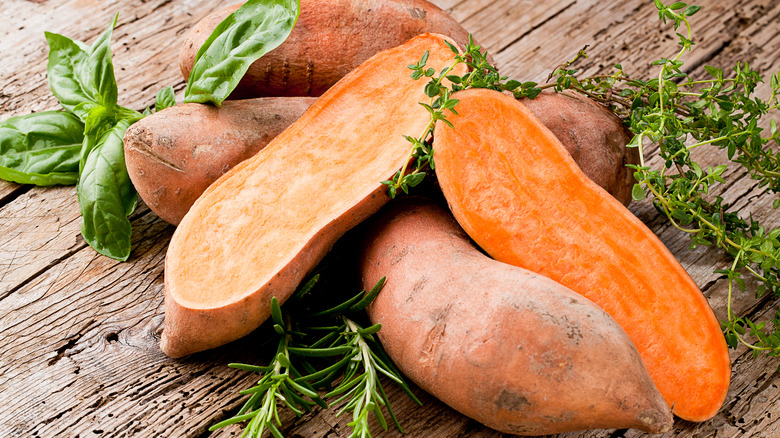 Sweet potatoes have recently surged in popularity as compared to their classic cousins. Not only do sweet potatoes deliver a more nutrient-dense French fry, the orange root veg has also proven an excellent lower-carb stand-in for bread in breakfast options like gluten-free sweet potato toast. And these swaps are well worth the added effort: Not only is sweet potato tasty, but according to WebMD, sweet potatoes are an excellent source of nutrients like beta carotene (particularly in the case of orange varieties) as well as anthocyanin (in the case of purple). Either color boasts loads of fiber, with about 3 grams of the stuff in a half cup of cooked sweet potatoes.