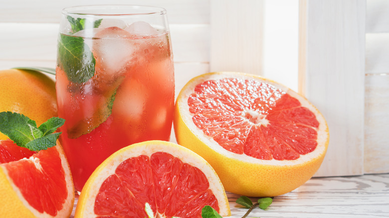Grapefruit juice is very high in vitamin C, per Healthline, so a tequila and grapefruit juice combo isn't just perfect for sipping on the porch of a long weekend afternoon, it will also help you fight off a cold. It's important to note that grapefruit interacts negatively with many medications, so you should always check with your doctor before getting the juicer and Patròn out.