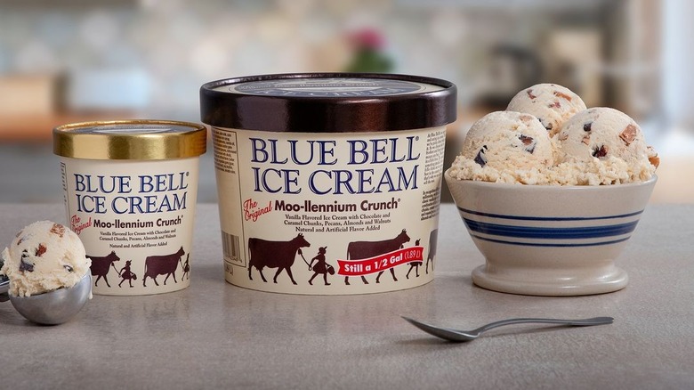 Despite some criticism about the ingredients, the Blue Bell Dr Pepper Float seems to be a hit among customers following its May 2023 release. The dessert consists of vanilla ice cream mixed with Dr. Pepper-flavored sherbert. For a more classic float, customers can add a few scoops of ice cream into a cup and pour in some Dr. Pepper. Along with countless flavors like Moo-llennium Crunch, and Black Walnut, Blue Bell has a line of ice cream sandwiches and bars. Fans who can't find their favorite flavors at the grocery store can go online to have it shipped nationwide.