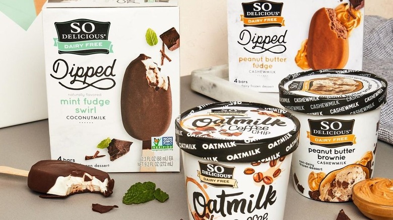 Customers can't get enough of So Delicious frozen treats and its wide selection. The cashew milk-based line appears to be a major hit with fans due to its creamy texture, reminiscent of dairy ice cream. The Salted Caramel Cluster ice cream consists of cashew milk mixed with salted caramel, cashews, and chocolate. So Delicious has been praised as a top-tier vegan ice cream brand thanks to its powerful flavors and quality ingredients. While So Delicious is a great option for people with restricted diets, the non-dairy brand may not be appealing to all ice cream lovers, landing it toward the end of this list.