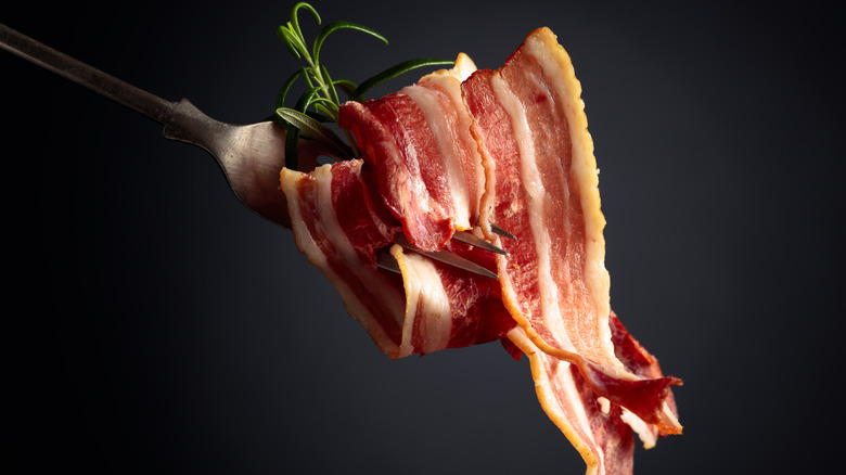 The one mistake you don't want to make is eating spoiled bacon, as like other delicious foods such as poultry and eggs, bad bacon can cause salmonella poisoning. So always make sure to examine your bacon carefully before cooking. According to Healthline, there are three telltale giveaways when bacon goes bad, all of which are easily discoverable by checking the look, feel, and smell of your beloved salt-cured pork.