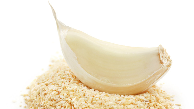 Not only is garlic versatile in its indispensable flavor in a variety of cuisines, but also in the forms it takes on in the kitchen. Many of us are probably most accustomed to chopping up fresh garlic, but garlic is also used as garlic oil, garlic salt, black (fermented) garlic, garlic flakes, granulated garlic, and of course garlic powder (via The Spruce Eats).