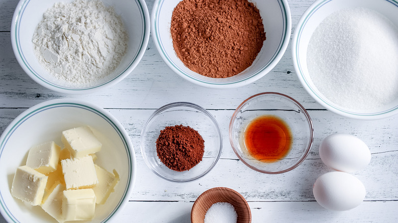 Moving down the list, you will also need some eggs and all-purpose flour. Next, pick up cocoa powder and salt. After that, you can head home and get to work!