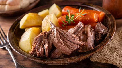 In the dead of the winter months, when every morning requires a pair of thick gloves and sturdy snow shovel, there are few dinners you'll enjoy more for dinner than the mighty pot roast. And usually cooking a great pot roast isn't too tough: you get yourself a big pot (usually a Dutch oven), throw in some diced onions, potatoes, carrots, and other winter veggies, and braise your beef in red wine or some other savory liquid. It's hard to screw up, and goes great with other belly-filling sides like mashed potatoes or thick egg noodles.