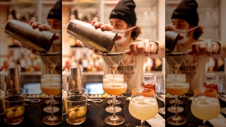 Shojo, located in Boston's Chinatown, is a perfect spot for catching up with friends, drinking fun cocktails, and sharing a few bites of Japanese-inspired fare. We're impressed that this place offers mokkiri service, which is a customary way of pouring sake that involves an overflowing glass (per SakeTimes). Naturally, Shojo has a wide selection of sakes that even rice wine newbies will love. The cocktails are impressive, ranging from the zippy Seoul Sizzle, which features spicy Korean gochujang sauce, to the tamer Tea Garden, which highlights Japanese whisky and matcha. Don't order the same drink twice — there are too many solid options to choose from to limit yourself to only one selection. There's also a small but solid list of beers and wines to select if that's more of your thing.