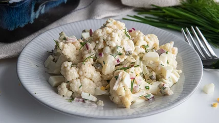 A great potato salad is absolutely delicious, but not all that healthy. Cooked cauliflower is very good for you, but not all that flavorful. So, what's to be done? You guessed it! Try this cauliflower potato salad recipe, courtesy of chef and recipe developer Jennine Bryant of The Marshside Pantry. This cauliflower potato salad will get your taste and nutrients going on at the same time!