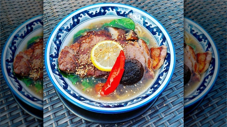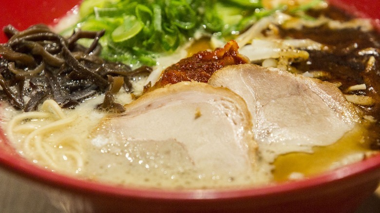 The resturant also boasts unique ramen flavors, like Apple Fennel Shio, which is made with ingredients like vegetable broth, apple, and pickled fennel. Unlike many other ramen spots, Ichigoh typically uses a chicken paitan broth rather than the milkier, heavier pork-based broths. Amongst its popular dishes are the Tori Paitan, Spicy Soboro Shoyu (though it's said to be just "the right" amount of spice, for those craving something extra hot), and the light, citrusy, semi-sweet Yuzu Shio ramen (via Yelp).