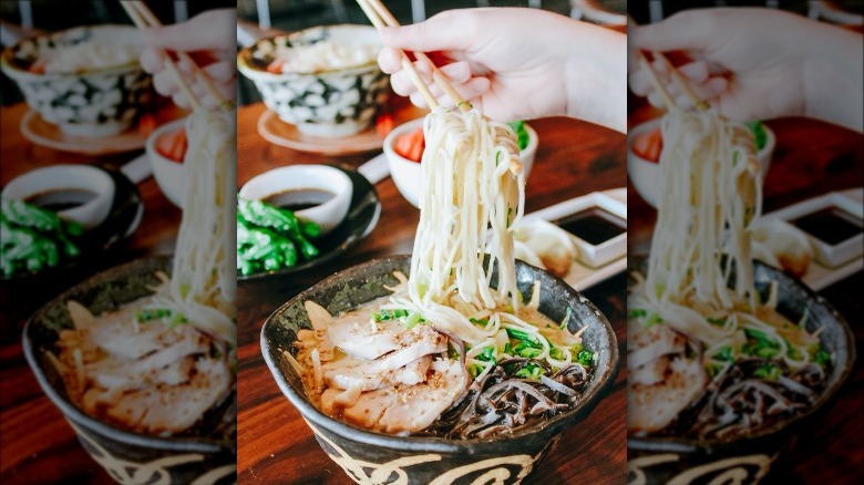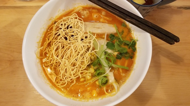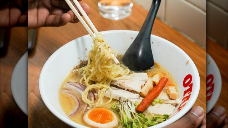 While a solid majority of some of the country's best ramen restaurants are congregated in diverse metropolitan cities like New York and Los Angeles, there are stellar spots serving up savory, flavorful bowls of the stuff across the country. Ramen is one of those dishes that can be simultaneously familiar and innovative, as pickier customers can safely order chicken or pork broth with noodles and classic toppings, while those looking for something novel can head to trendier spots for innovative concoctions like Impossible Meat ramen or hazelnut milk ramen. Even those with serious food allergies or restrictions, like vegans or celiacs, can find genuinely delicious ramen at many highly-rated restaurants around the country.