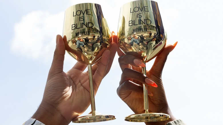 Netflix's "Love Is Blind" has returned full force for its sixth season, and while we have been graced with all new singles, there is one returning favorite. We aren't talking about hosts Nick and Vanessa Lachey, either. It's the gold wine glasses that have been a mainstay and fan favorite from the very beginning — and as the newest season heads toward its March 6, 2024, finale, fans may be wondering why the wine glasses are metallic gold at all.