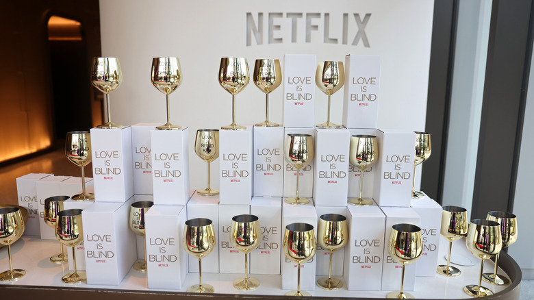 According to Today, both the stemmed and stemless gold wine glasses are, in part, a means for visually tying the show together. "I don't know. It's something I like. When you turn on the show, you know it's our show. It's a very authentic, really true following of these people's journeys, but I like the fact that we have this sort of connective tissue with that in a really light way, it's fun," said "Love Is Blind" creator Chris Coelen.