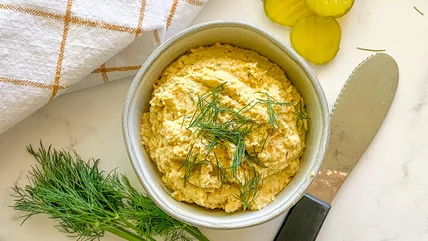 "Hummus is one of my favorite things to have in the fridge, and I love making all variations of it. This recipe takes basic hummus to a new level with the dill flavor, and who doesn't love a classic dill pickle?" Hahn says. "The flavor has a hint of sour pickles, but it's not overpowering. It is a familiar taste that people love. It is creamy and delicious."