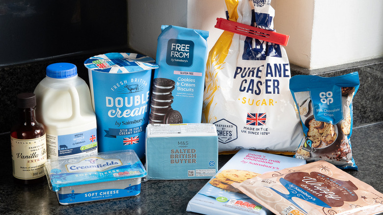 To prepare this tasty chilled treat, you'll need a cup of Oreo cookie crumbs, divided, about 4 tablespoons of butter, melted, plenty of cream cheese, a good dose of sugar, some vanilla extract, some whipping cream, divided, plenty of chocolate chips or chopped chocolate bits, divided, a cup of whole milk, and a packet of chocolate pudding mix. Bryant uses Angel Delight pudding mix, but you can use whatever brand you like best!