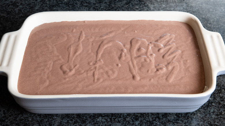 - Take the lasagna dish out of the fridge, pour the chocolate pudding layer on top of the cheesecake layer, and smooth it out, then refrigerate for 10 minutes to allow the layer to set.